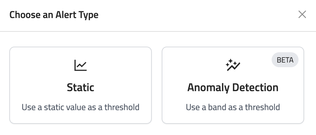 - Outside of the band - Triggers an alert when the request data falls outside the normal range, either above the upper limit or below the lower limit.