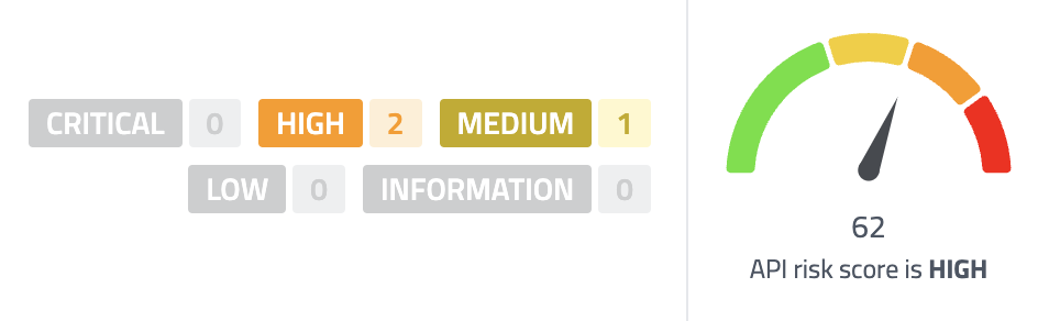 - Low: Below 40 Higher severity findings impact the score more significantly. The presence of critical findings results in the highest scores, followed by high, medium, and low findings. Learn more about API risk scoring.