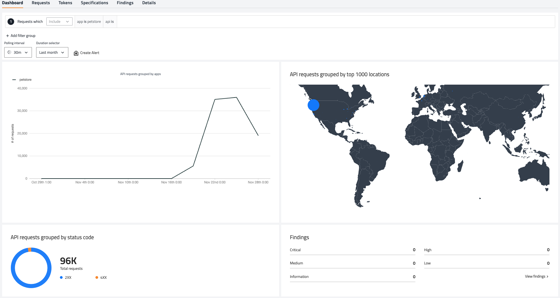View security findings per API, including descriptions, severities, and remediation advice. Findings.