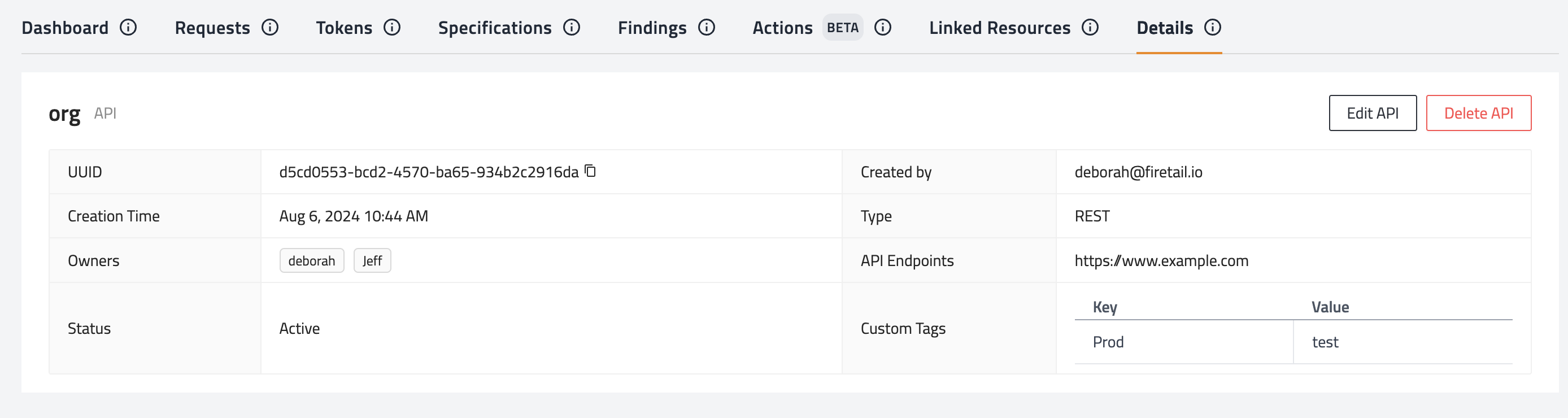 View existing API tokens or create new ones for authentication and integration.iew or create any specifications for that API. Specifications can be used to group information for an API. Creating a specification on the platform enables you to view the inventory data. Learn more about Specifications