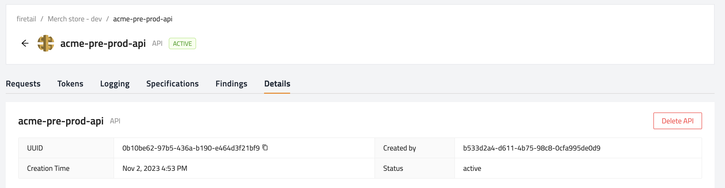 Navigate to Inventory in the FireTail platform and select the APIs tab.