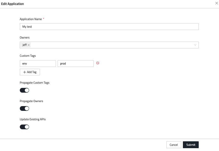 - Propagate Custom Tags: Automatically inherit tags for any API created under this application.