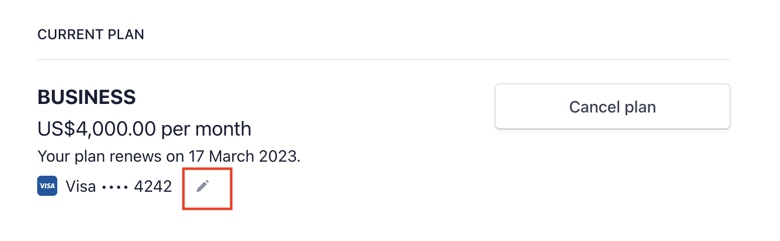 Click the pencil icon next to the currently selected payment method.