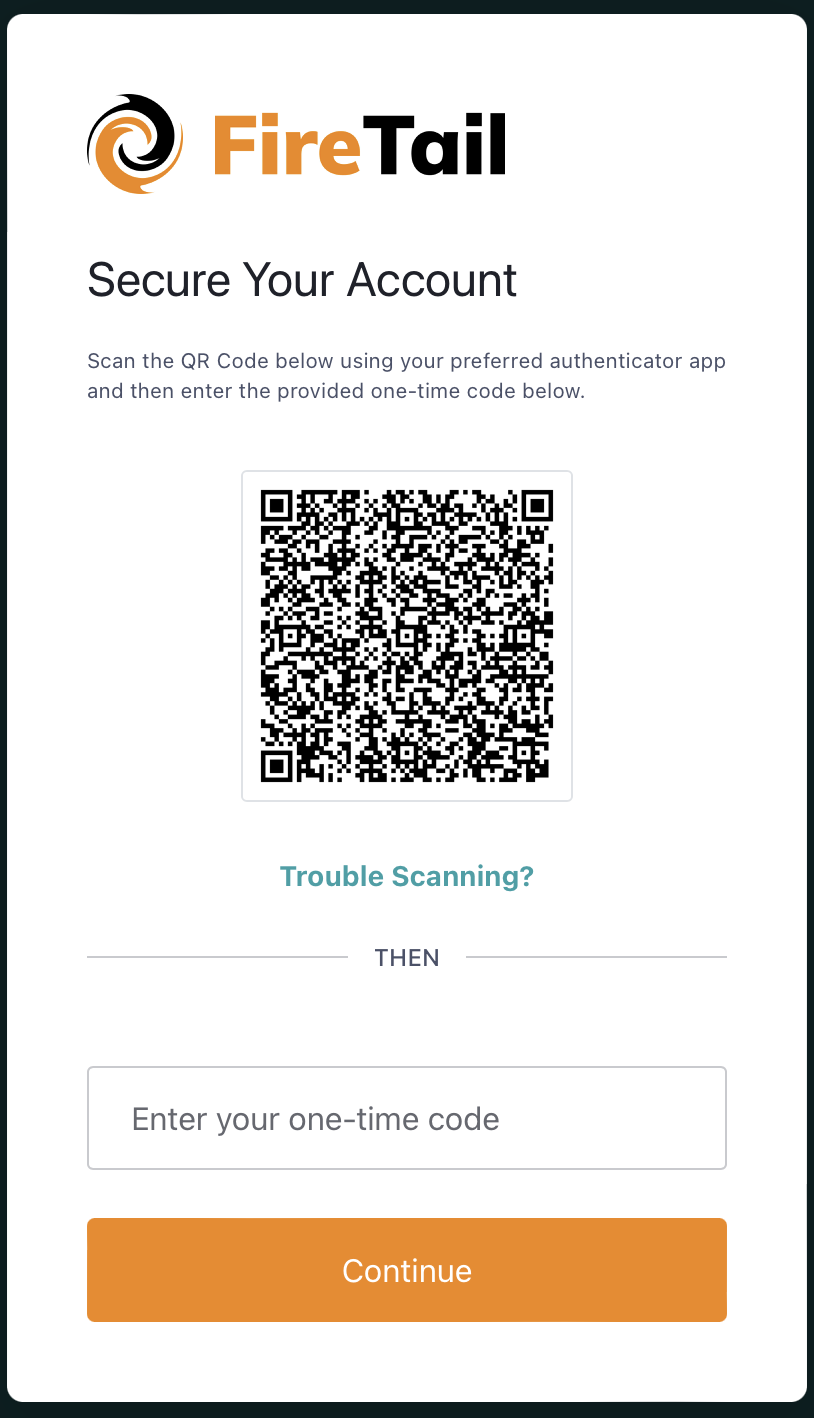 Using your preferred authenticator app (for example, Google Authenticator) scan the QR code. A one-time passcode is generated on the app.