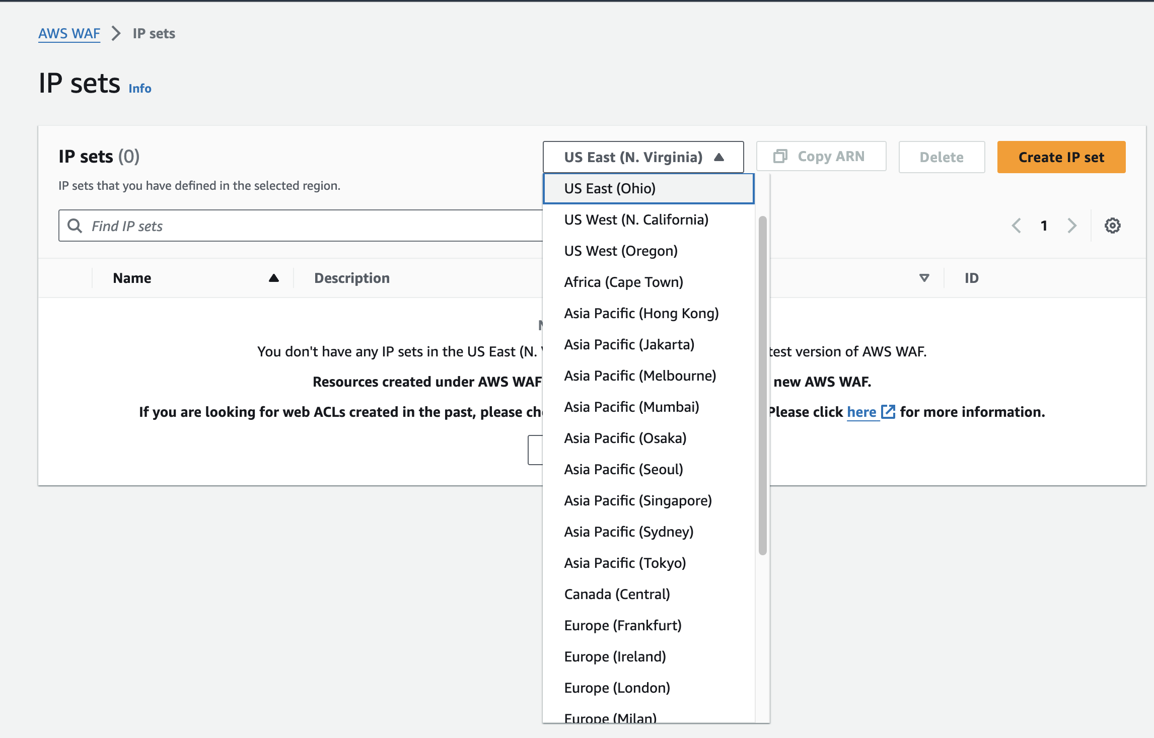 - Enter the values into IPV4/IPV6 Set ID and Set Name fields. These values can be retrieved from AWS: