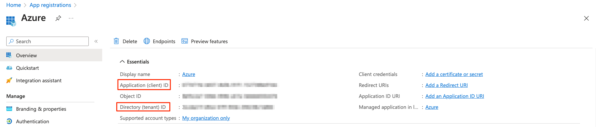 Copy the Tenant ID and Client ID.