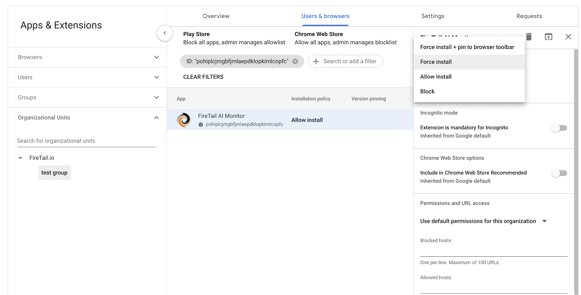 - Assign the FireTail AI Monitor extension to relevant Organizational units.