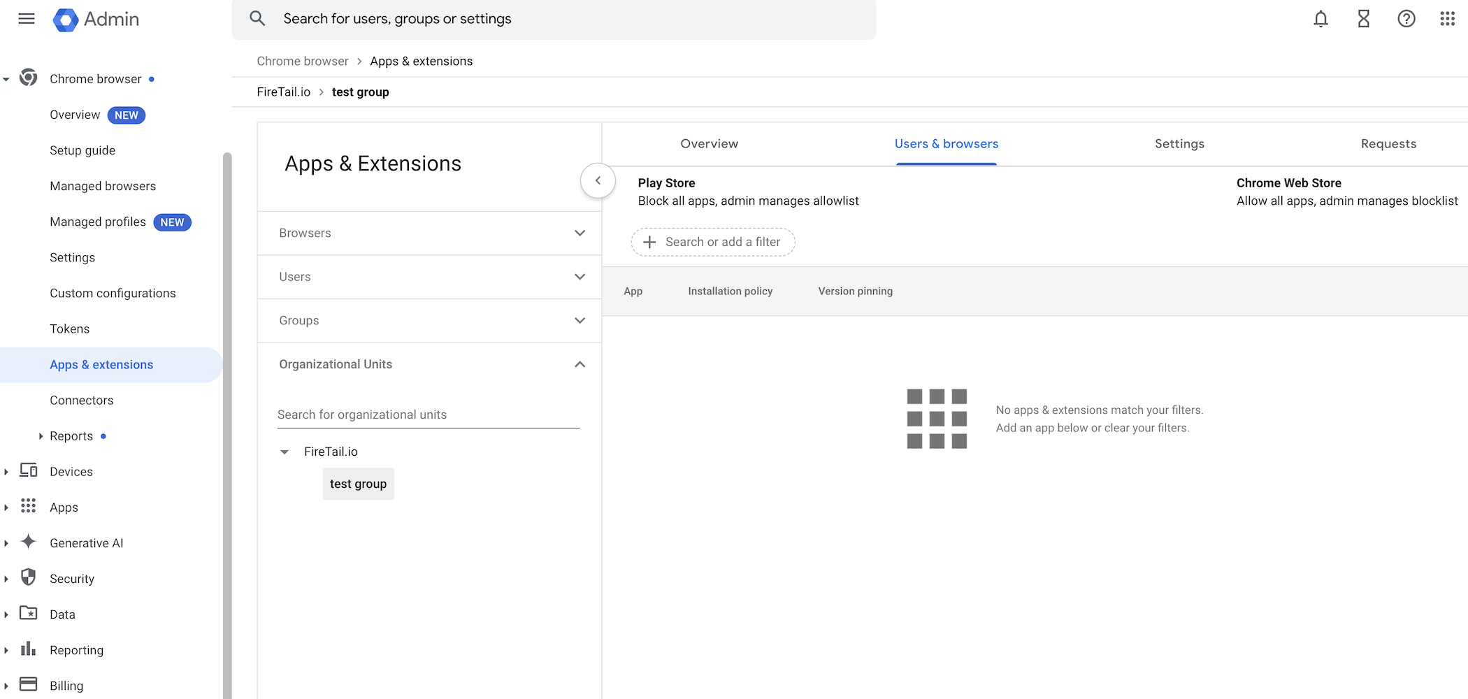 On the Apps & extensions page, click the Users & browsers tab.