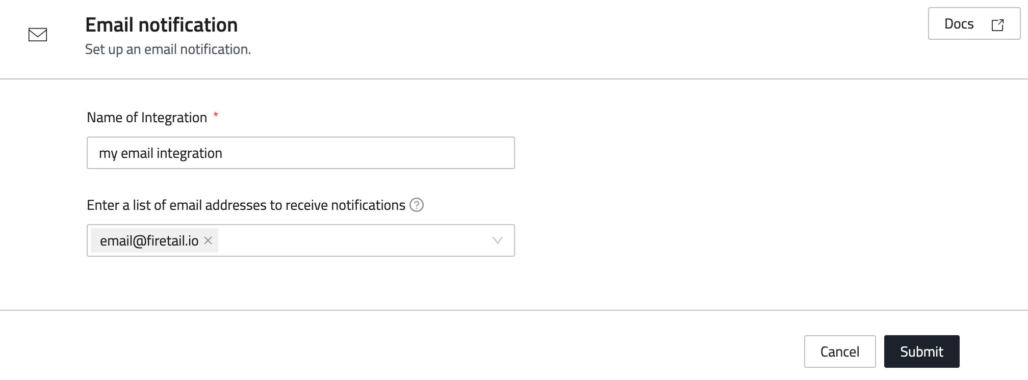 Setting up an email integration enables you to send alert and incident notifications to one or more selected email addresses. When the integration is set up, you can choose it as the notification method when creating alerts or incidents. selected emails.