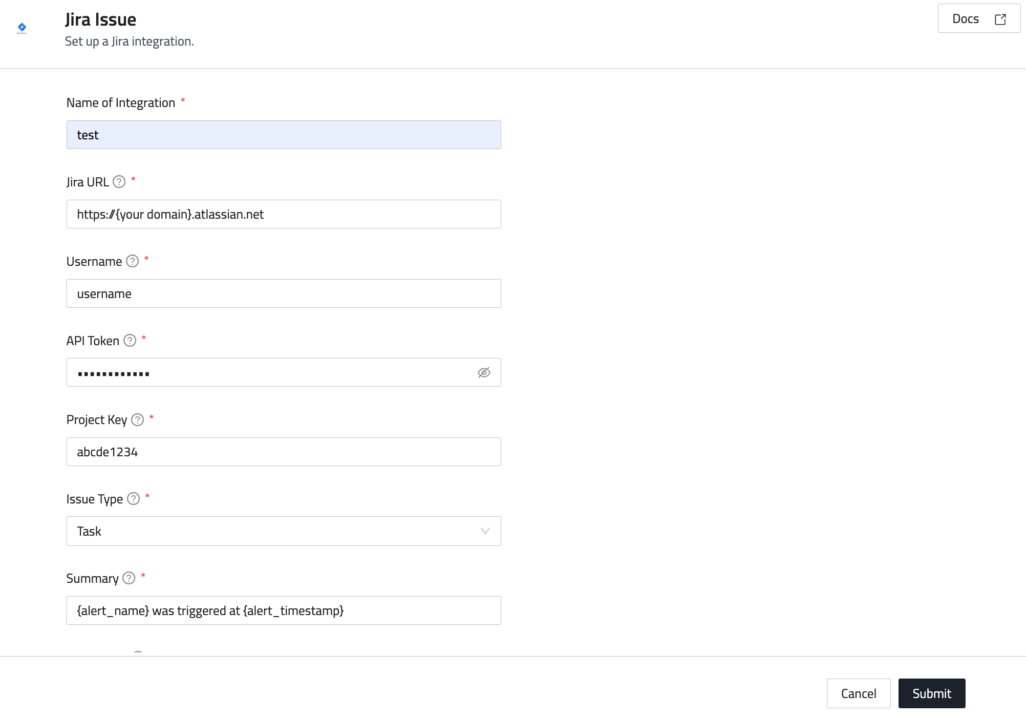 - In the Name of Integration field, enter a unique name to identify this Jira integration.