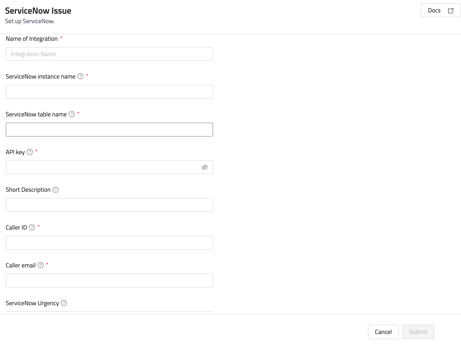 - Short Description - Enter a brief description to appear in ServiceNow.