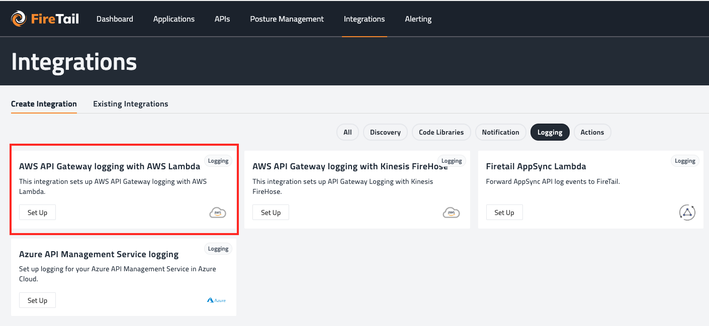 Navigate to Integrations in the FireTail platform. Select the Create Integration tab.
