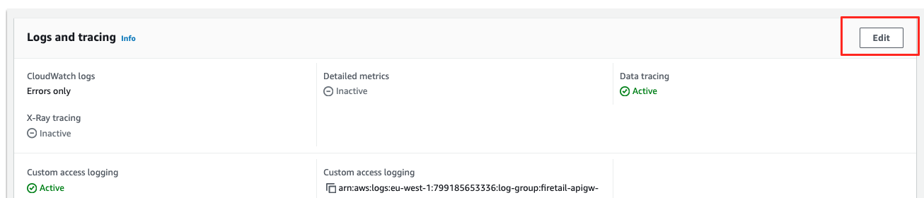 When the integration has been created you must attach it to every API Gateway API that you want the logging for. This needs to be done for logging to start.
