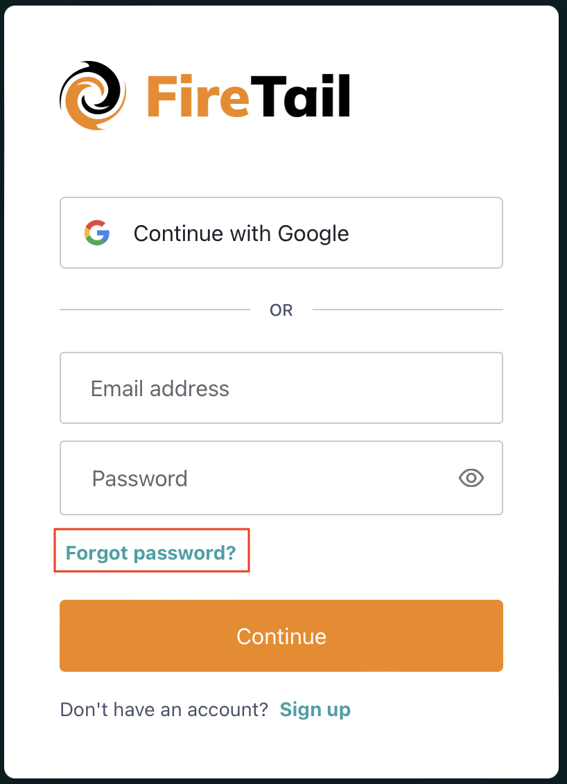 - Enter the email address you use to log in. Click Continue.