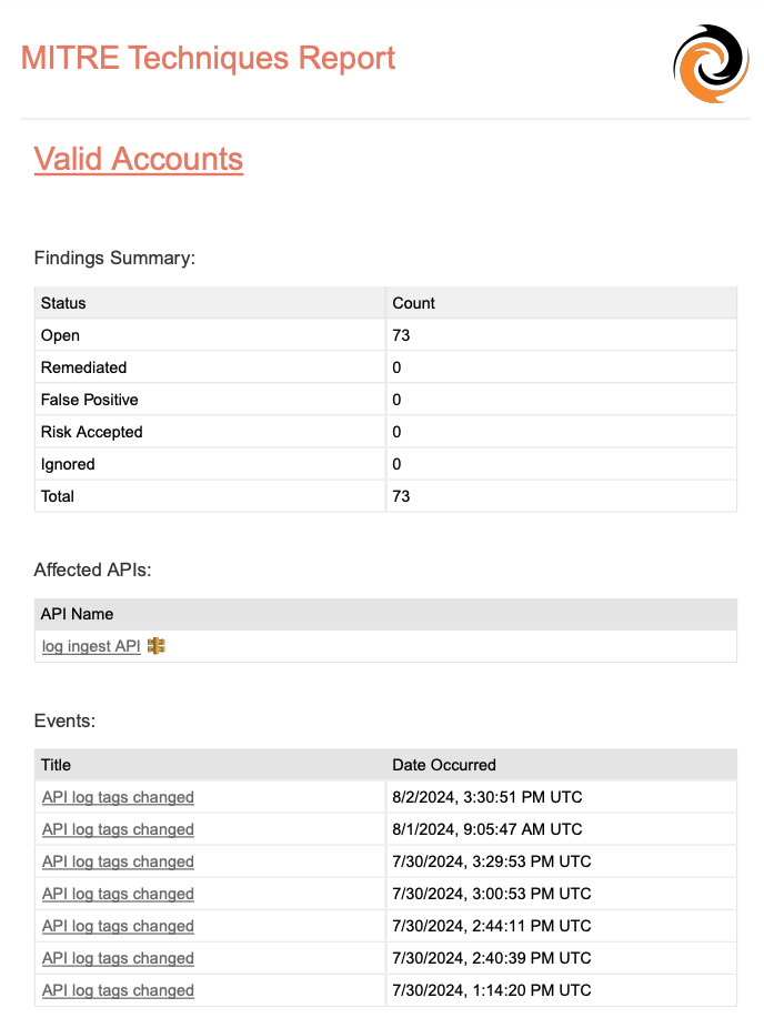 This report provides a summary of findings discovered in the platform mapped to the MITRE ATT&CK Enterprise Techniques framework.