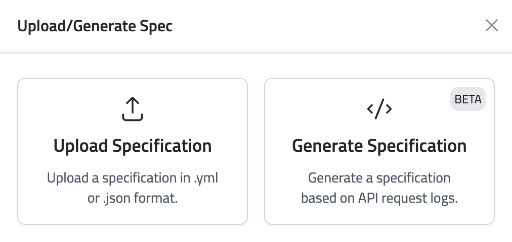 Specifications can be used to group information for an API. Create specifications on the FireTail platform to easily view inventory data for that API. To create a specification, upload a JSON or YAML file into the platform.