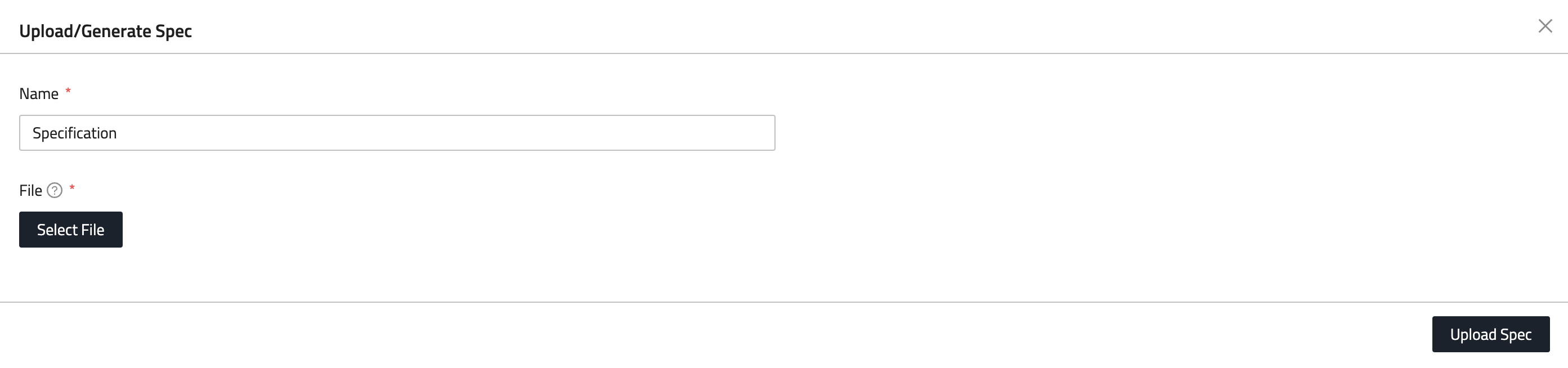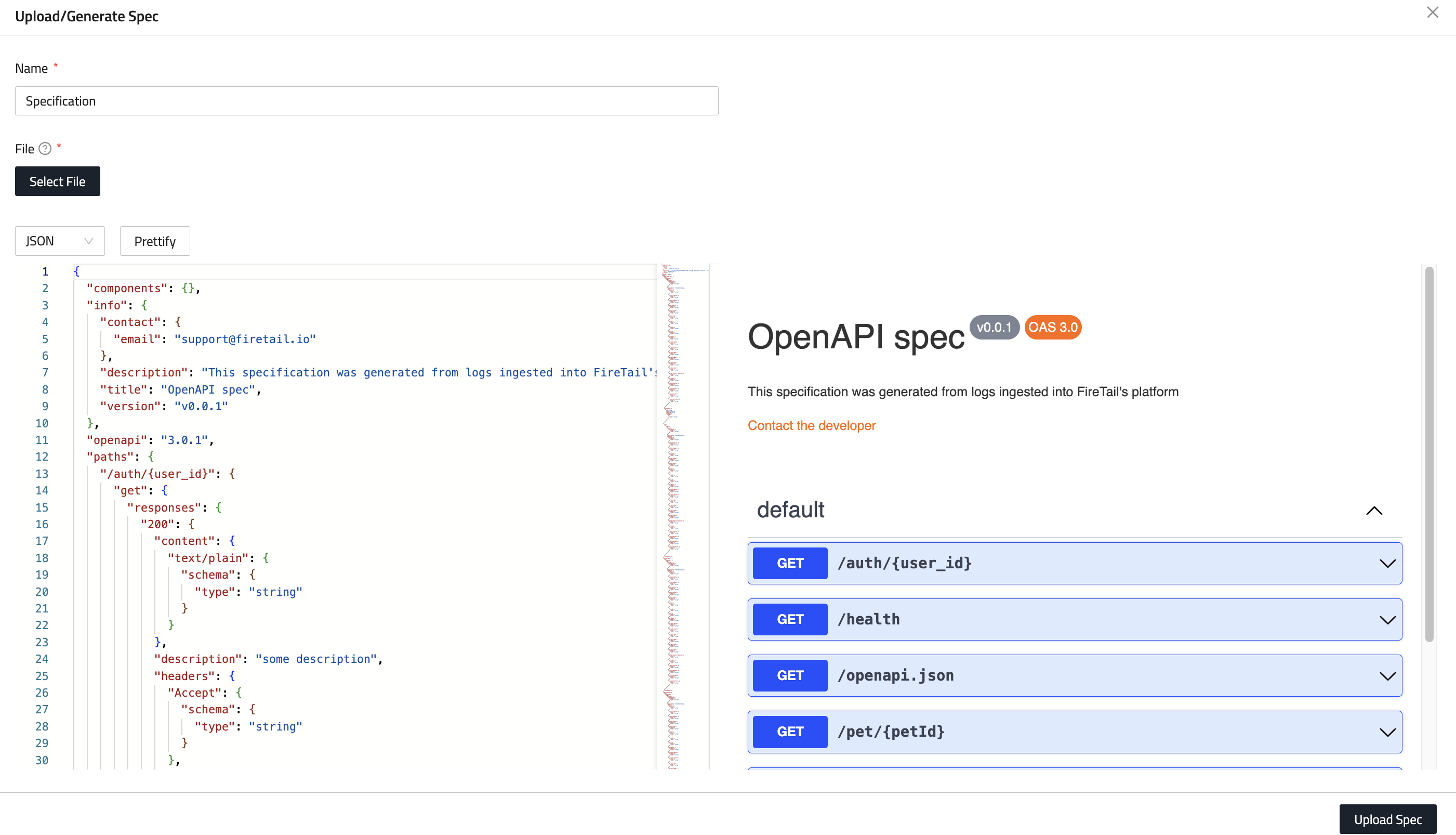 - Click Upload/Generate Specification.